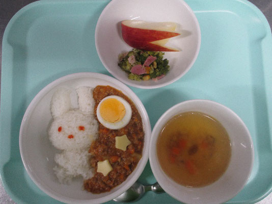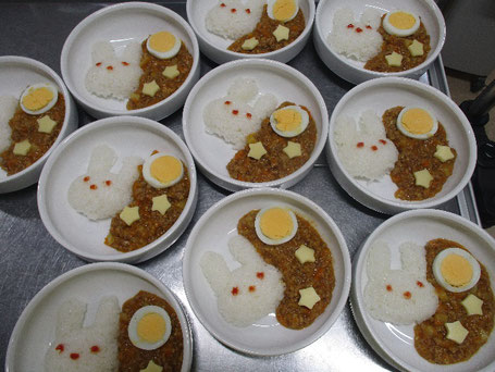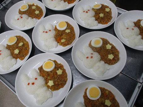 3歳未満児クラスはうさぎさんの可愛い顔のごはんです。
